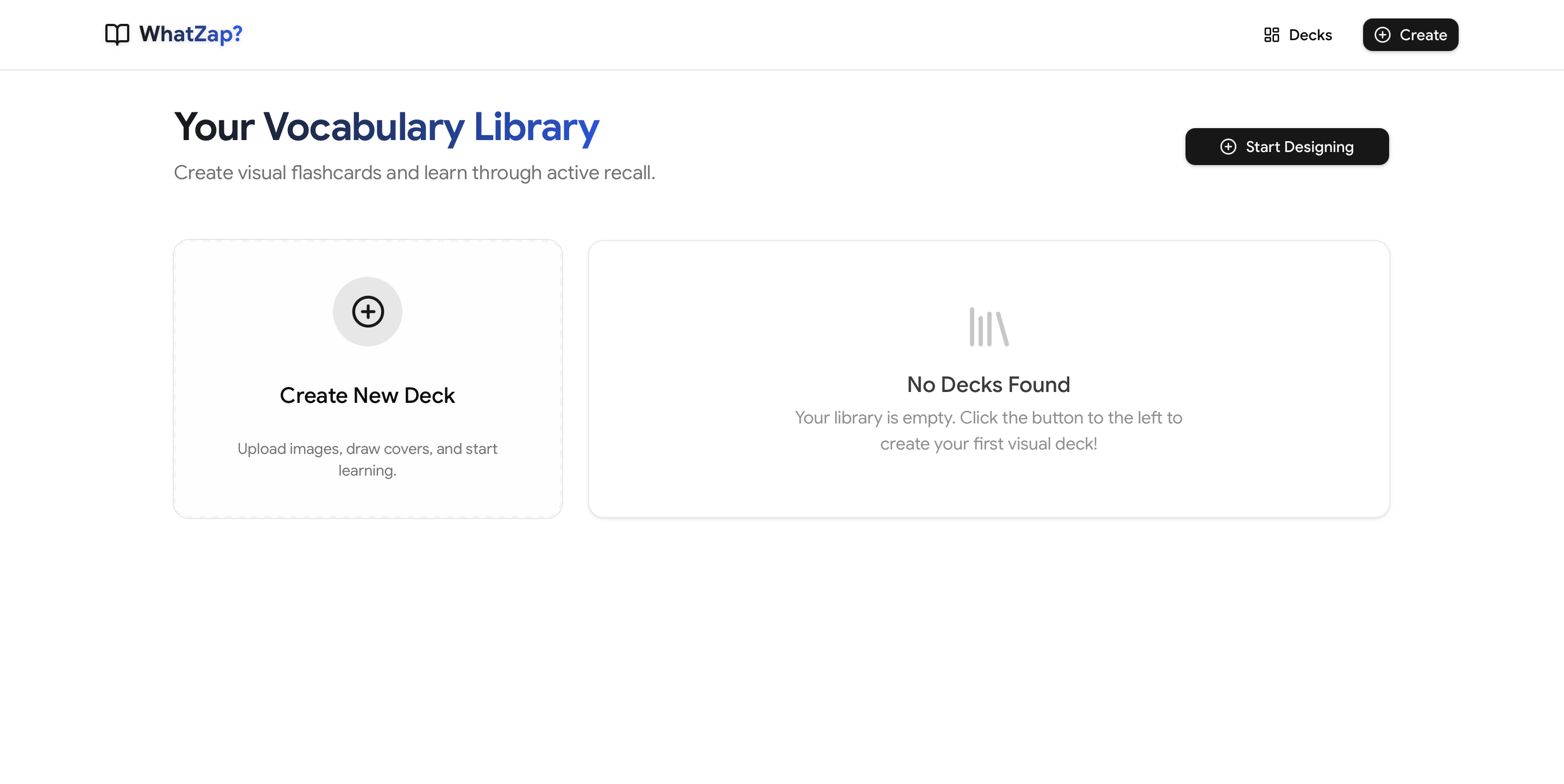 WhatZap is your personal vocabulary library. Create visual flashcards and learn effectively through active recall.